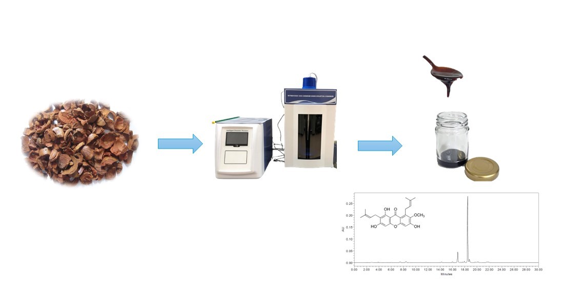 Three extraction methods for G. mangostana pericarps were investigated using maceration, stirring and ultrasonic assisted extraction (UAE) methods. The best extraction method found was the stirring method for 24 h using ethanol as the solvent which showed the highest extraction yield, total phenolics, total flavonoids, α-mangostin content, and antioxidant activity. Thus, G. mangostana extract can be used to develop cosmeceutical products, herbal products and herbal medicine. However, UAE can be another choice for extraction, which shows good extraction efficiency by reducing time and energy consumption in the process. Thus, the UAE method can be considered as a green process that is designed to minimize environmental impact by reducing the use of hazardous solvent, energy, and resources while maximizing efficiency and sustainability (Roobab et al., 2025).